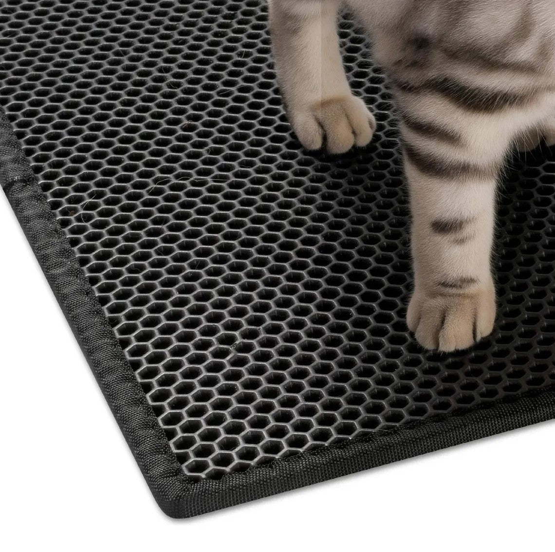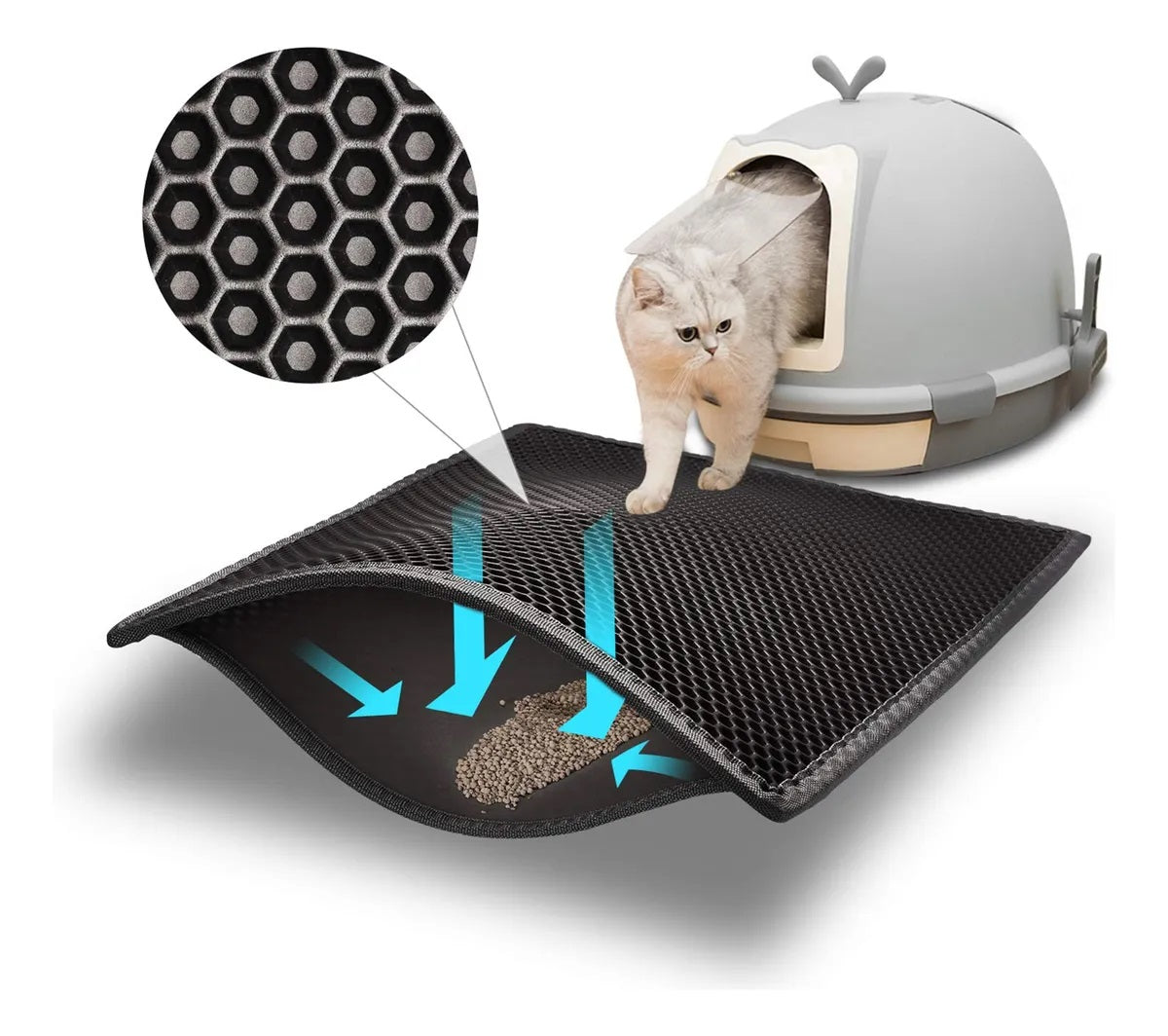 Alfombra higiénica para gato en color gris. Tapete doble capa diseñado para atrapar la arena que tu bola de pelos...