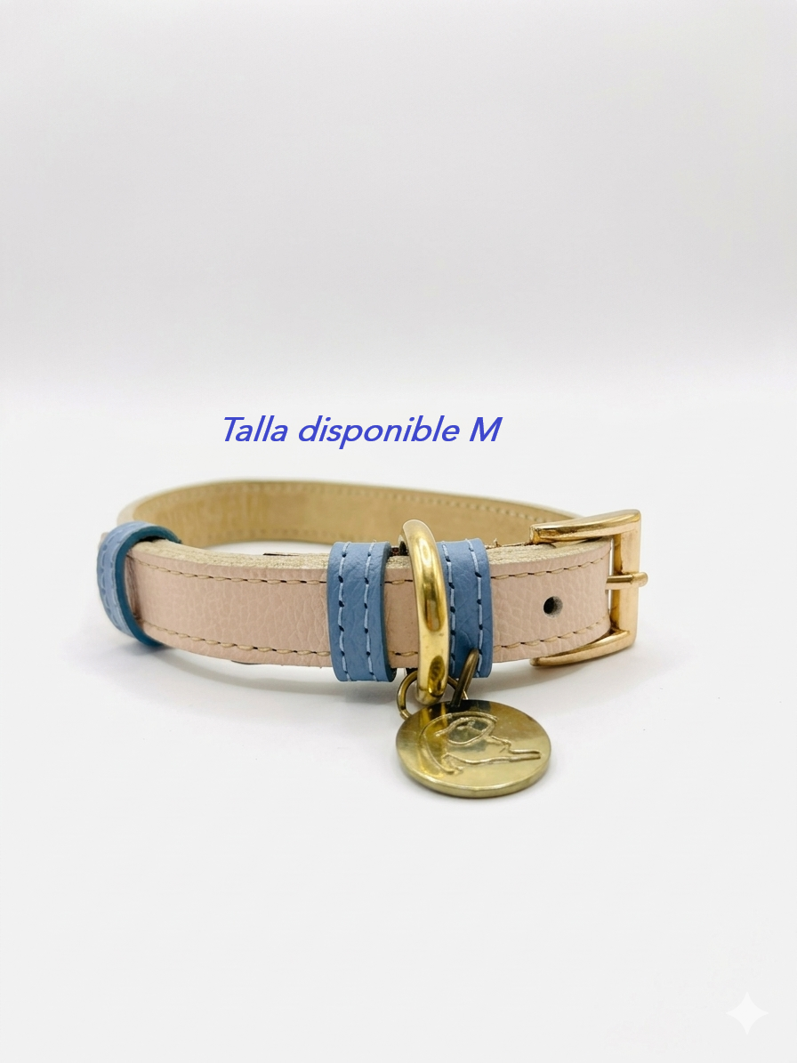 Collar solo, de color hueso con azul combinado. NO es doble faz. Nuestros diseños son elaborados en 100% cuero, hecho...