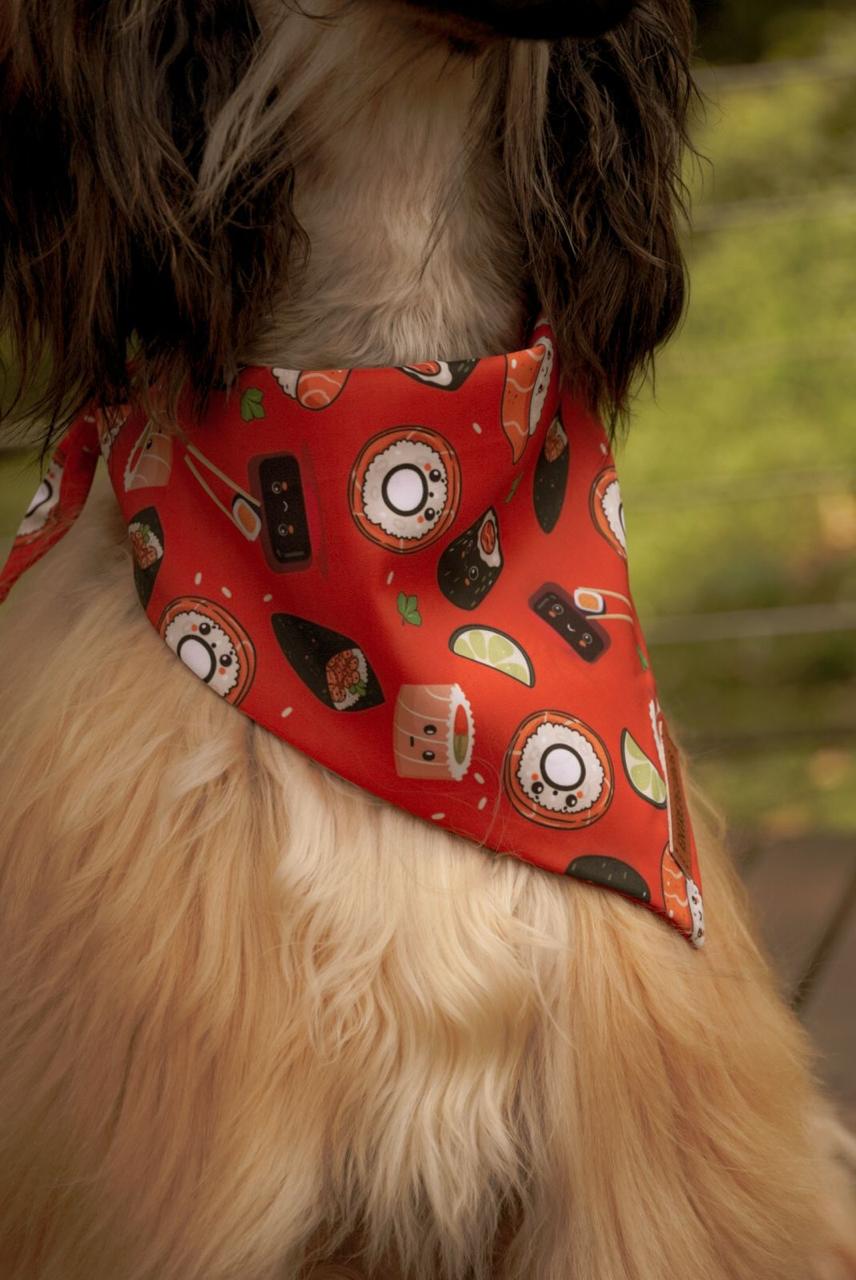 No es comida, es fashion 🍣😎. Pañoleta de sushi para perritos y gaticos que saben que el mejor roll es...